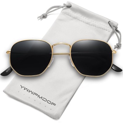 Womens Trendy Square Hexagonal Flat Mirrored Sun Glasses UV Protection